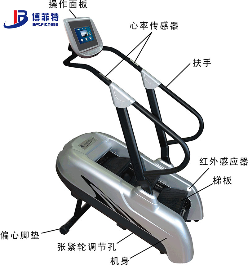 博菲特BCE-403階梯式登山機(jī)是新一代登山機(jī)產(chǎn)品,全新流線(xiàn)型扶手,更加美觀,人性化,符合用戶(hù)操作習(xí)慣,扶手寬度更大,適應(yīng)更多健身人群,可實(shí)現(xiàn)面板顯示、參數(shù)設(shè)置、運(yùn)動(dòng)模式選擇、多媒體娛樂(lè)、速度控制、安全保護(hù)等功能,并實(shí)時(shí)顯示時(shí)間、高度、步數(shù)、運(yùn)動(dòng)速度、設(shè)定速度、心率、卡路里等參數(shù)。