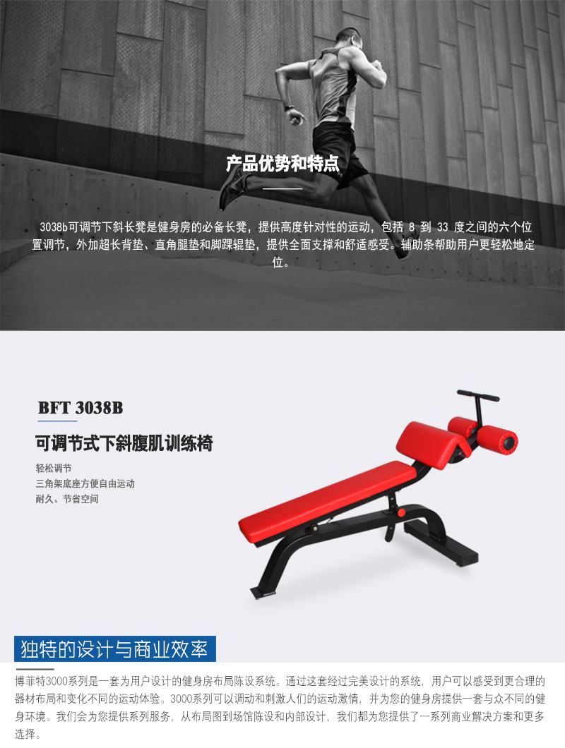 可調(diào)節(jié)腹肌板,健身房多功能可調(diào)節(jié)腹肌訓(xùn)練器,廣州博菲特健身器材有限公司,商用健身器械生產(chǎn)廠家。8 到 33 度之間的六個位置調(diào)節(jié),外加超長背墊、直角腿墊和腳踝輥墊,提供全面支撐和舒適感受